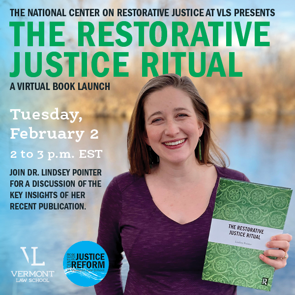 The National Center on Restorative Justice at Vermont Law School will be hosting a Virtual Book Launch on February 2nd from 2-3 pm EST. Register to attend here.
