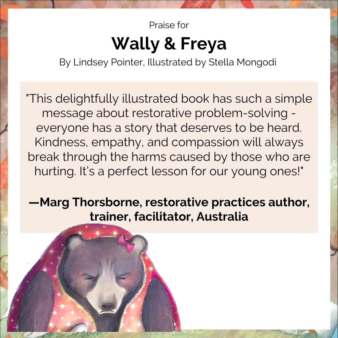 This circle guide provides a way for readers to engage in dialogue about themes from Wally and Freya, a children’s picture book about restorative justice. It is intended for use in classrooms or with groups of children in other contexts.
